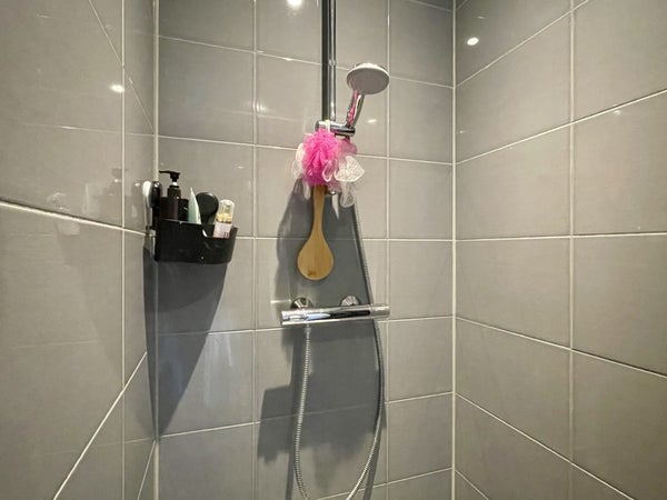 The bedroom has a walk-in shower and sink. There is a separate toilet available.
