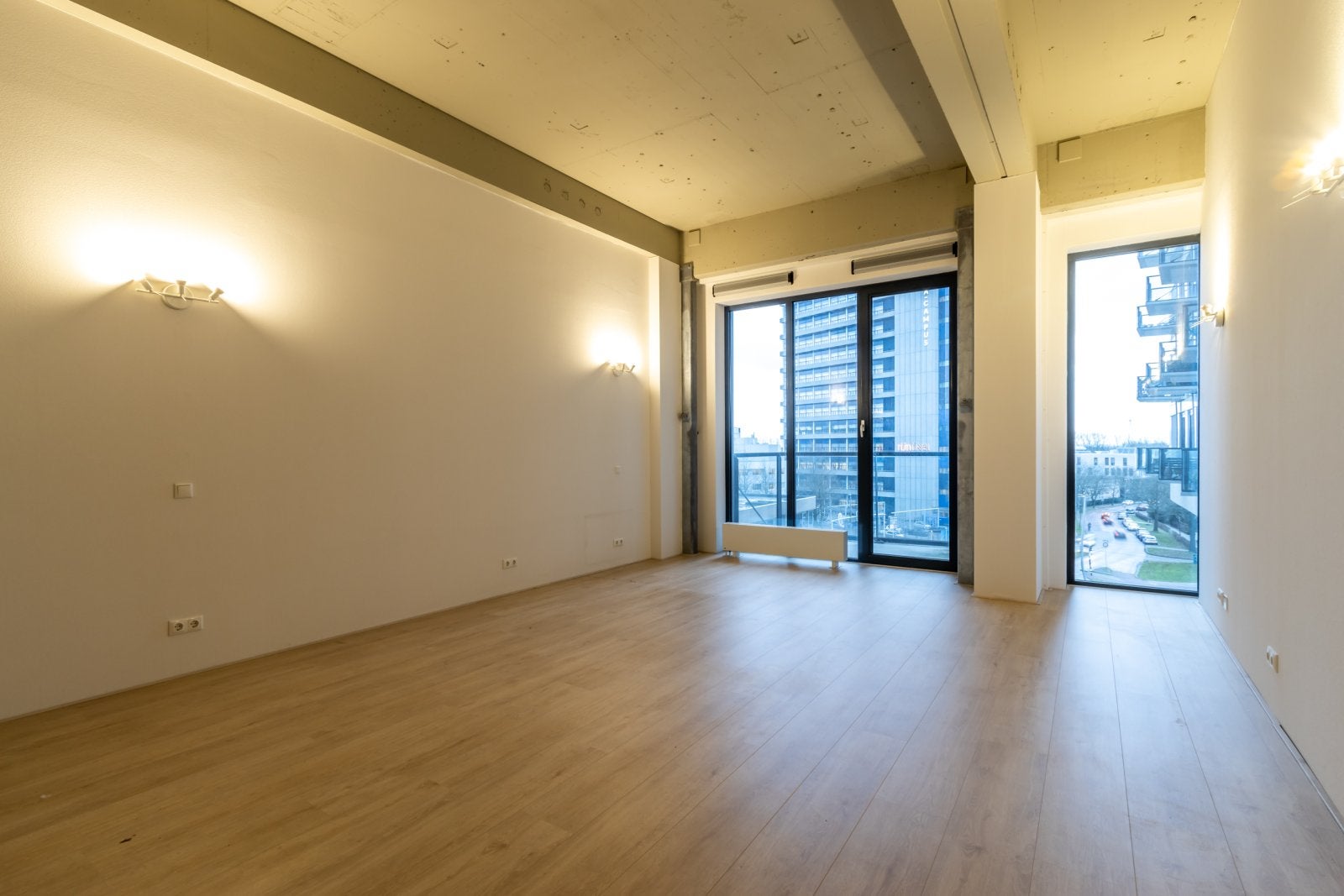 The apartment in High Park boasts an industrial look with a 3.7-meter high ceiling and large windows that provide ample natural light and beautiful views. The green, park-like surroundings enhance this unique living project, which offers a total of 203 sustainable apartments ranging from 45 to 130 square meters, with 2 to 4 rooms.