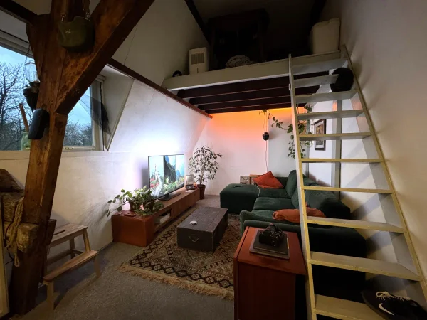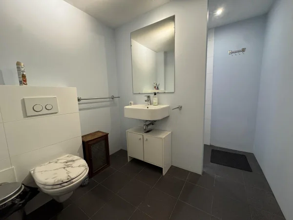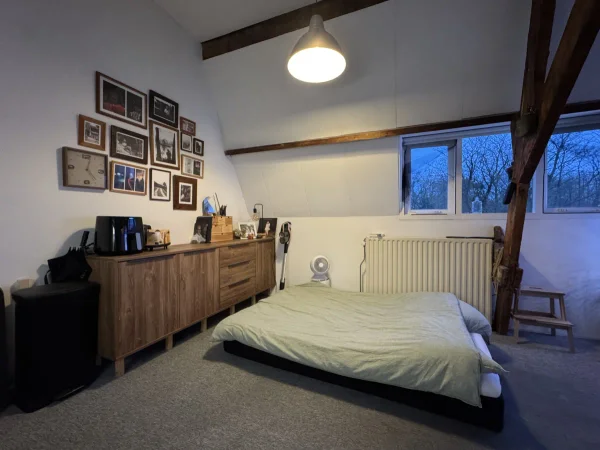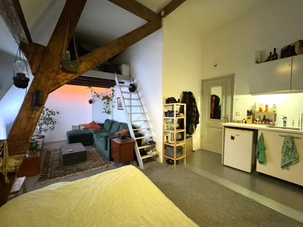 This furnished studio of approx. 27 m2 is located in a monumental building along one of the canals in Breda. Situated on the second floor, it offers views of the canal and Valkenberg city park. The spacious studio features high ceilings, a private kitchen, and a sleeping loft. You also have access to a private storage closet in the hallway, alongside a shared closet. The bathroom, equipped with a walk-in shower and toilet, is shared with one other resident. Use of the washing machine is included. This living space is exclusively suitable for one working, quiet, non-smoking resident. Students and cohabitation are not allowed.