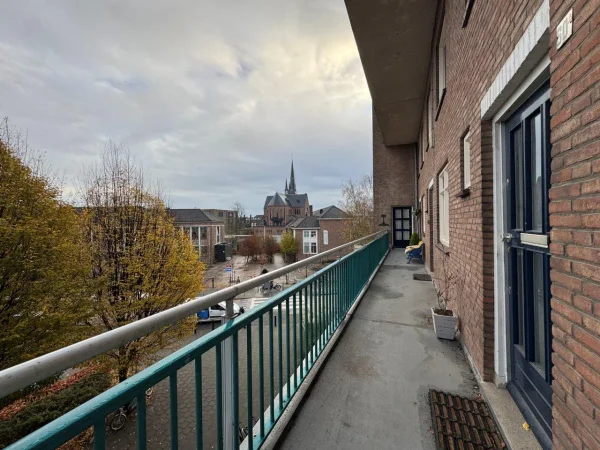 This 4-room maisonette is located on the 2nd and 3rd floors of Residentie Markflat, featuring a sunny balcony and an indoor storage room. You will enjoy a stunning view of the Mark River, providing a sense of tranquility and space. The home is set in a green environment, near walking paths and parks, yet the historic center of Breda, with its shops and dining options, is just a short walk away. The charming Wilhelminastraat, known for its boutiques and cafes, is around the corner. For commuters, the location is ideal; the Central Station is nearby and highways to the Randstad and Antwerp are quickly accessible. The 2nd floor includes the living room with wooden flooring, kitchen, and access to the balcony. The 3rd floor has 3 bedrooms and a bathroom with a bath-shower combination and sink. A spacious private storage room is in the basement.