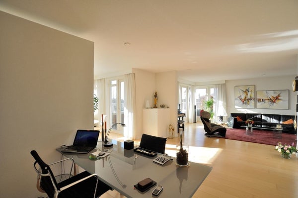 Well-finished 3-room apartment, penthouse type, located in an excellent location on the fifth floor (top floor), with 3 sun terraces and a parking space in the parking garage.