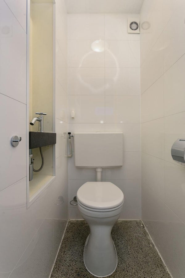 Via the main entrance you reach all rooms in this lovely apartment. There is a separate toilet in the hallway. The bright living room (7.39 x 3.70/3.19 m.) has access to the balcony facing south. From the living room you see the (shared) green garden.