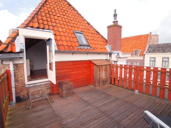 For rent: Luxurious furnished apartment on the second floor on the market square, in the heart of Brielle. The apartment has a living area of 75m², is located directly under the wooden roof, and features a terrace.