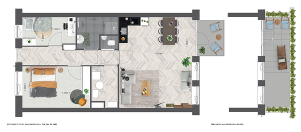 This apartment on Molenweg in Bunnik will be available for rent starting March 1 for an indefinite period. The complex, completed in November 2021, features 24 rental apartments blending old and new. On the ground floor, the apartment has a living space of 81 m² and an east-facing terrace of 11 m². The layout includes a hallway with storage, a modern bathroom with a walk-in shower, a separate toilet, and two bedrooms measuring 13 and 7 m², respectively. The bright living room provides direct access to the terrace. Amenities like a fully equipped kitchen and underfloor heating ensure maximum comfort. The rent is € 1,525 per month, excluding service costs of € 90.