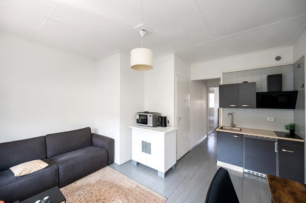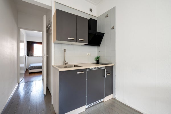Layout: Entrance, hallway and access to the living room which is equipped with laminate flooring. The kitchen features a 2-burner stove, combination microwave, and a fridge-freezer combo. The apartment has 1 bedroom. The bathroom is equipped with a shower, toilet, and sink. The apartment has a lovely roof terrace of approximately 12m² that you share with 1 neighbor.
