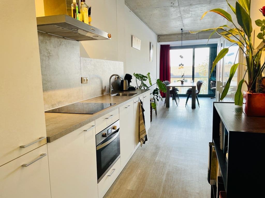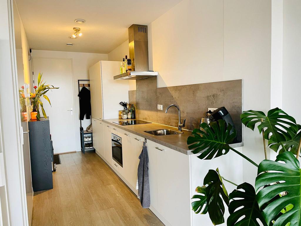 This modern apartment in 's-Hertogenbosch South is sustainable and well-located. You can reach the first floor through a central entrance with intercom, mailbox, elevator, and staircase. The apartment features a hall with a technical room for the washing machine and dryer, a bathroom with shower, sink, and toilet, and a kitchen equipped with various built-in appliances. The spacious living-bedroom of 33m² has large windows and a light PVC floor. There is a private lockable bike storage in the basement of approximately 3.5m² and a parking space on the premises. The apartment is gas-free, has energy label A, and is available from March 1, 2026.
