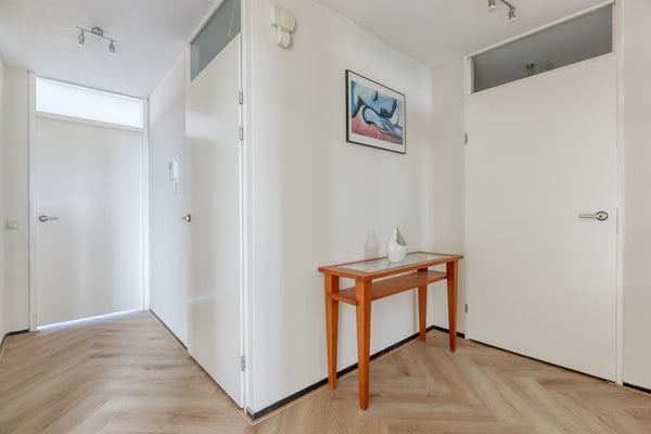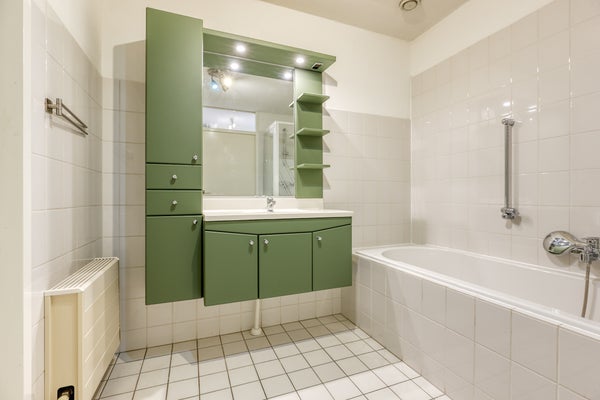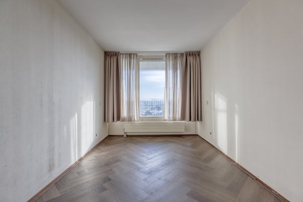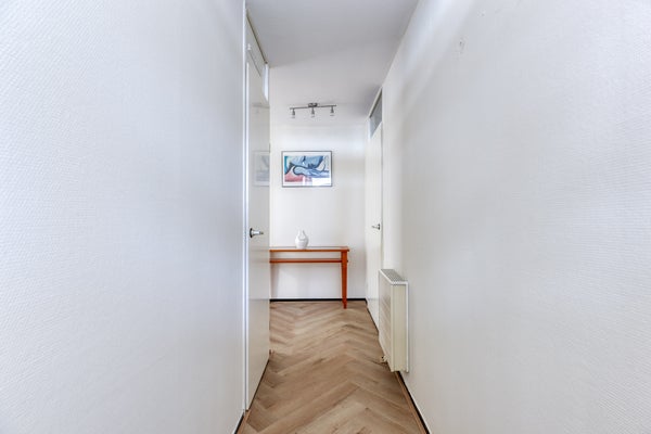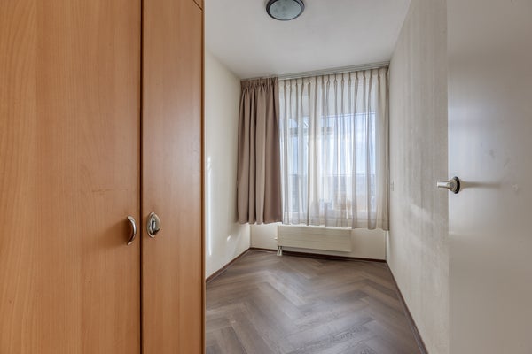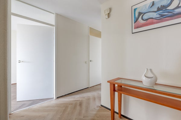 The apartment has two bedrooms, both located at the rear of the property and both offering beautiful views over The Hague. The tidy bathroom is fitted with a bathtub, separate shower cabin and washbasin with vanity unit. The washing machine is also located here.