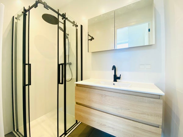 LAY-OUT: Entrance at street level; you enter the communal area. You take the stairs to the first floor where the apartment is located. Front door; entrance to the apartment into the hallway. In the hallway you will find the separate toilet with washbasin. Spacious and bright living room of approximately 32 m². Luxurious open kitchen equipped with a cooktop, refrigerator, freezer, extractor hood, combination oven, and dishwasher. Bedroom of approximately 14 m². The bedroom features a built-in wardrobe wall, and from the bedroom you have access through French doors to the lovely balcony located at the rear. Bathroom fitted with a shower and washbasin.