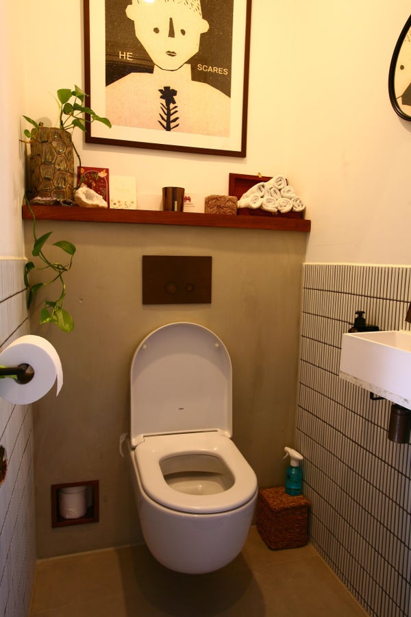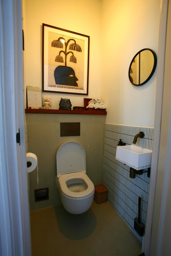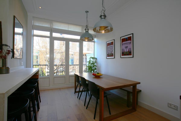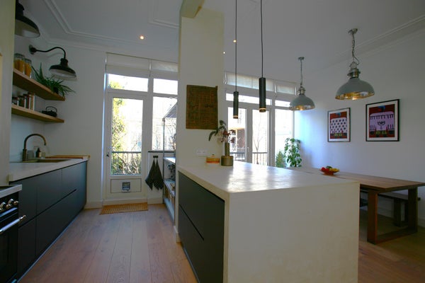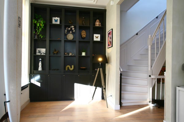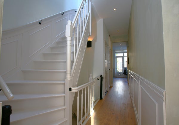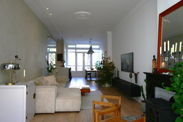Via a staircase you reach the first floor, where there is a very spacious living room with open kitchen. The house is equipped with all conveniences and feels homely.