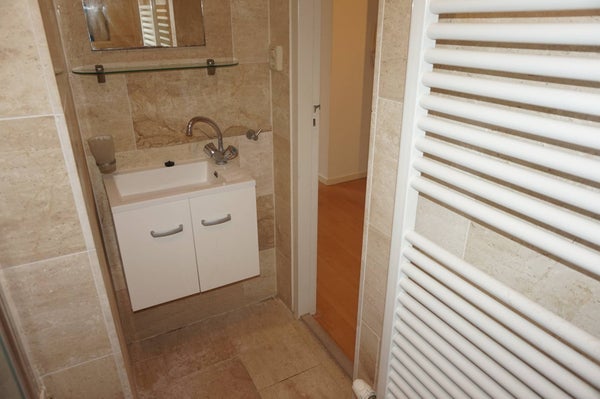 Shared front door at street level with the private door of the apartment on the 3rd floor at the front of the building. You enter into a hallway which provides access to a spacious living room with great folding windows. The living room has a neat kitchen. The kitchen is equipped with a 4-burner gas stove, extractor hood, refrigerator, and combination microwave oven. Next, you will find the luxurious bathroom, which is equipped with a shower/bathtub, fixed sink, toilet, and washing machine connection. Furthermore, this apartment has a nice spacious bedroom.
