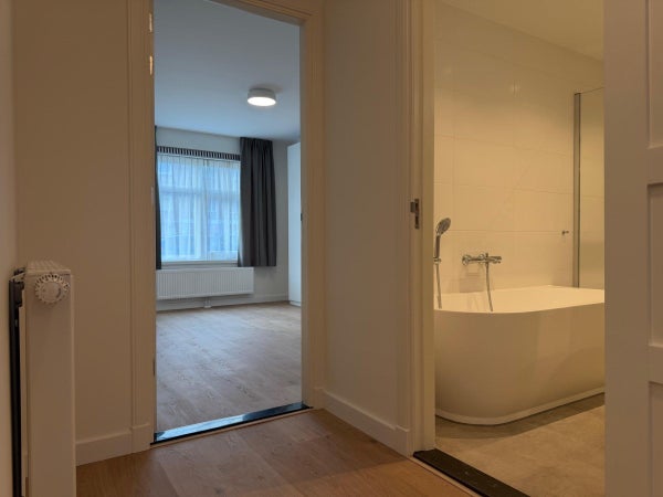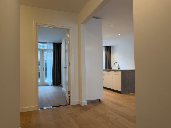 Completely renovated ground floor apartment (energy label A) with three bedrooms, enormous living room with luxurious open kitchen and back garden, located within walking distance of the cozy Herenstraat in the center of Oud-Rijswijk and with a tram stop in front of the door (The Hague CS 10 minutes).