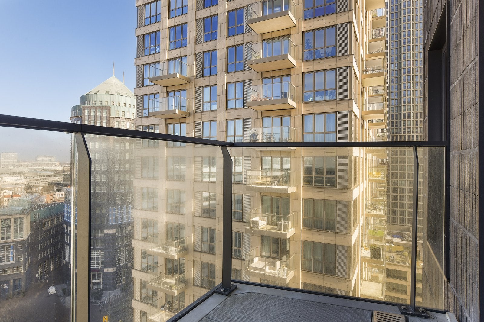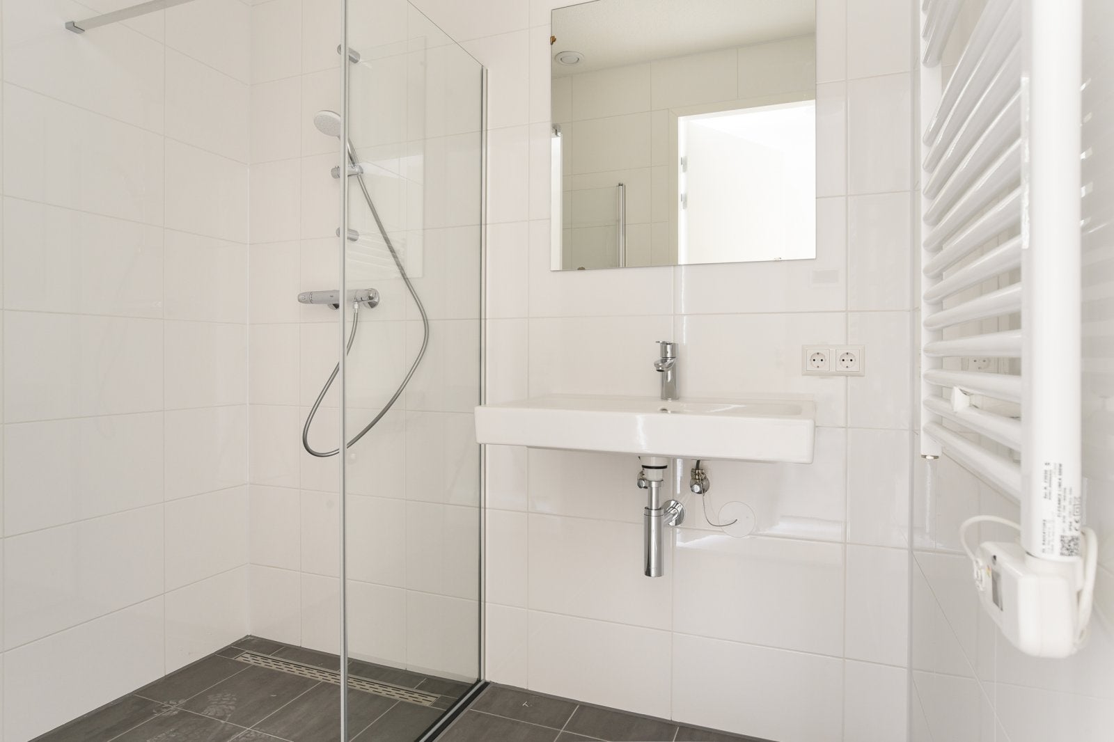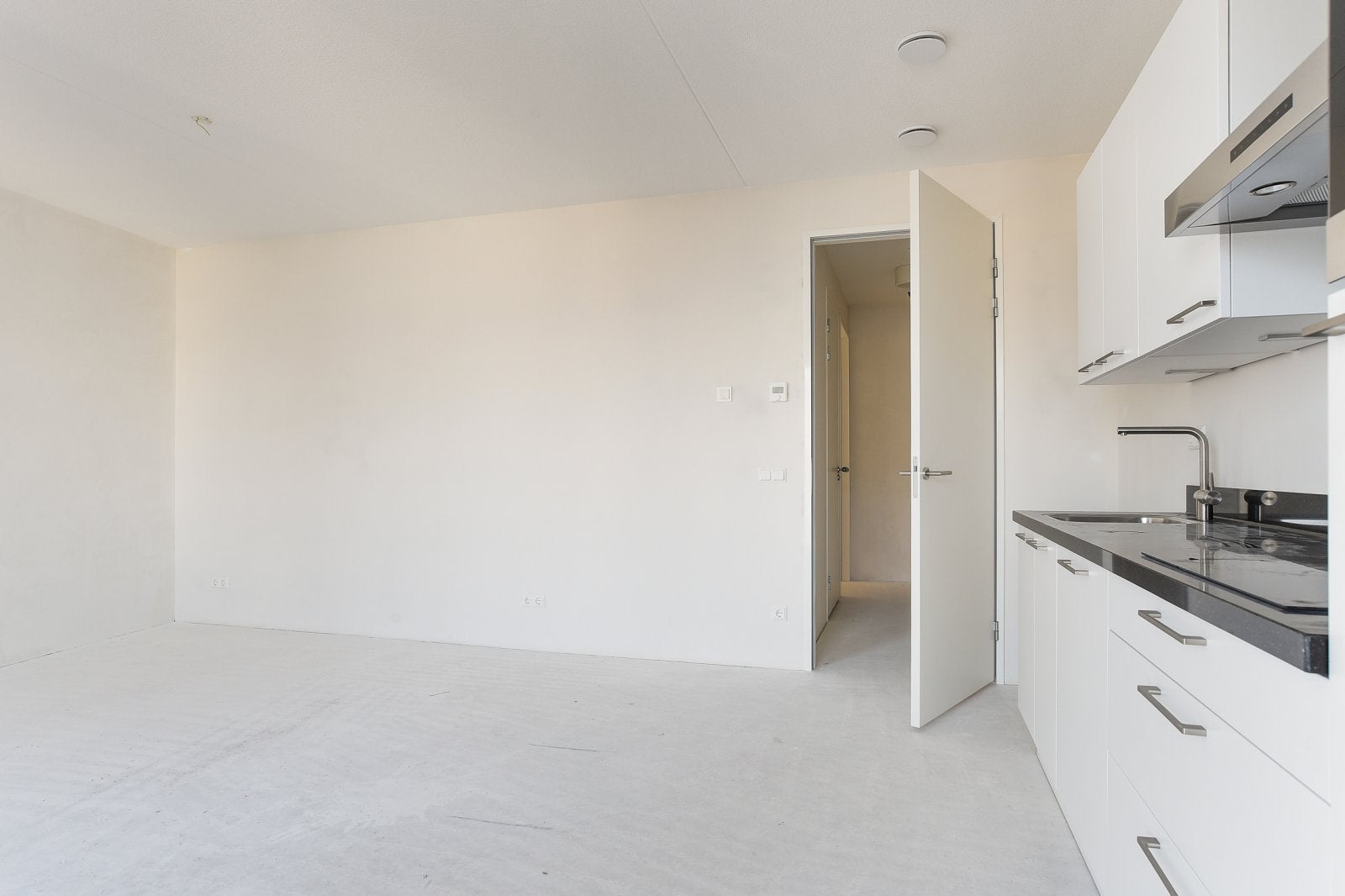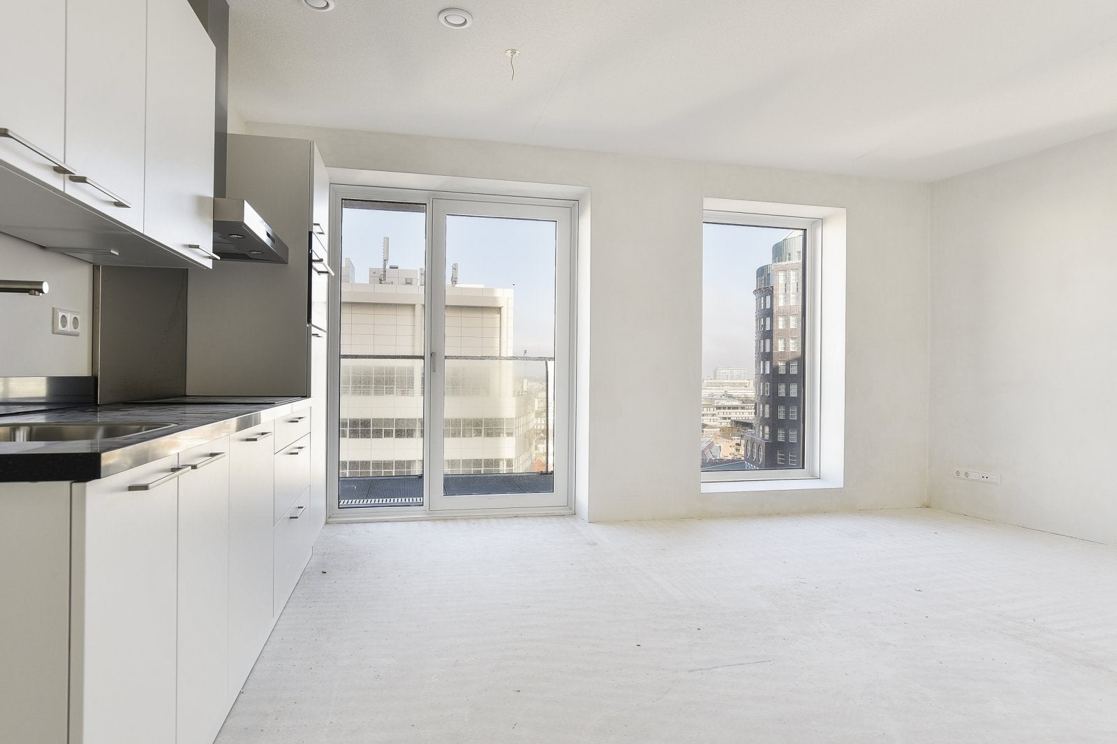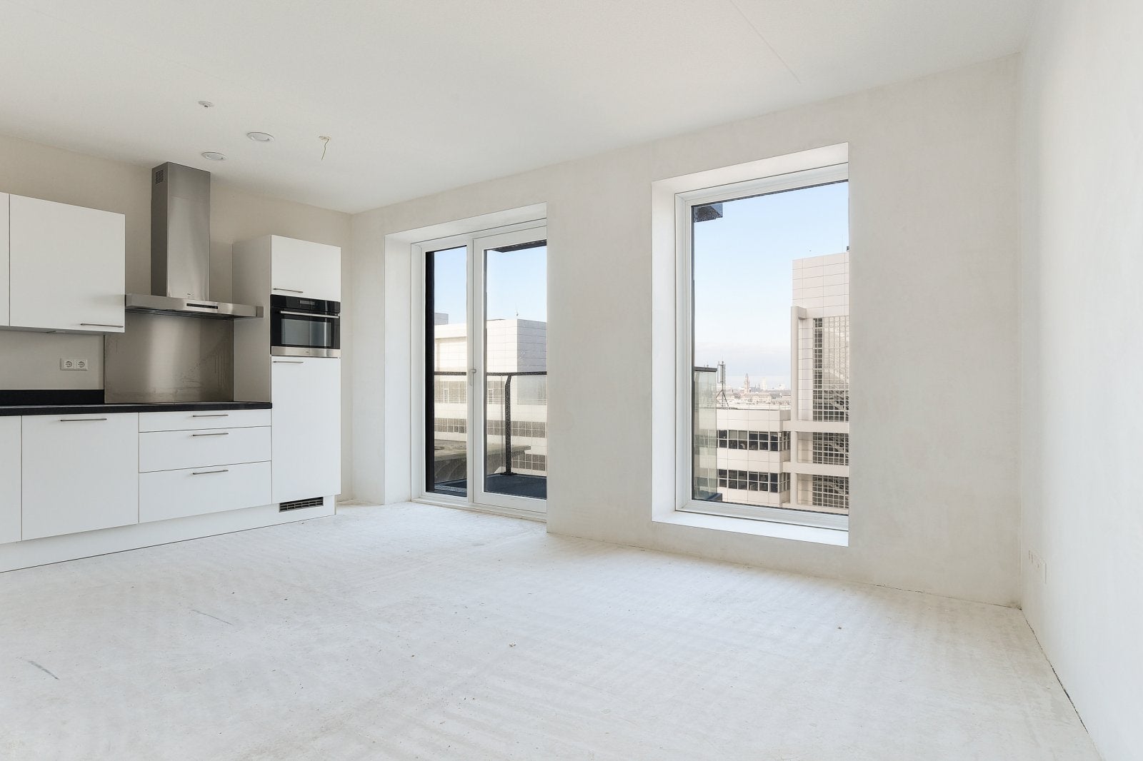 The modern kitchen is equipped with ATAG appliances, including an induction cooktop and dishwasher. The bathroom features a walk-in shower and high-quality Hans Grohe faucets. Enjoy the perfect blend of urban vibrancy and luxury living.