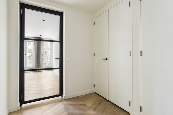 Brand-new luxurious open kitchen, fully equipped and fitted with a Quooker. The small hallway leading to the master bedroom and the second, smaller bedroom is perfect as a guest room or home office. Tasteful bathroom with walk-in shower and double washbasin with large mirror.