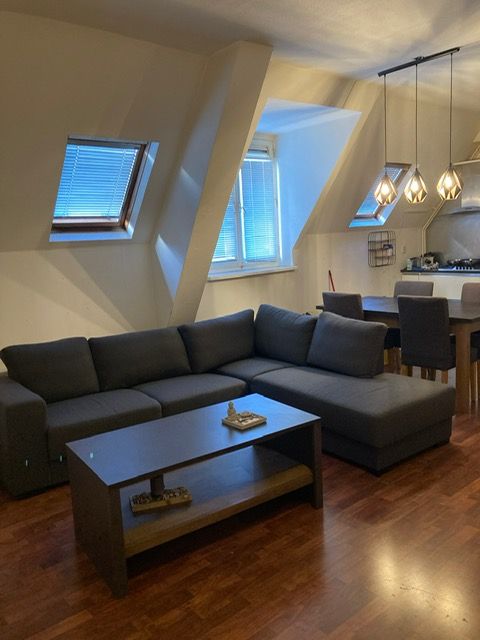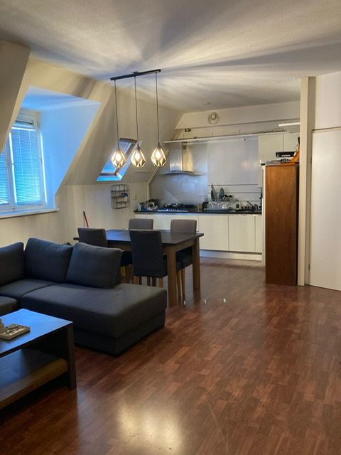 Maintained entrance. Spacious hallway with deep closet. Luxury toilet. Modern bathroom with bath and washbasinl. Very special, light, sunny and spacious dining room (32 m2) with luxury open kitchen, fully equipped and laminate floors. Spacious master bedroom. Slightly smaller 2nd bedroom with wardrobe wall and desk. Public transport around the corner and conveniently situated near the motorway.