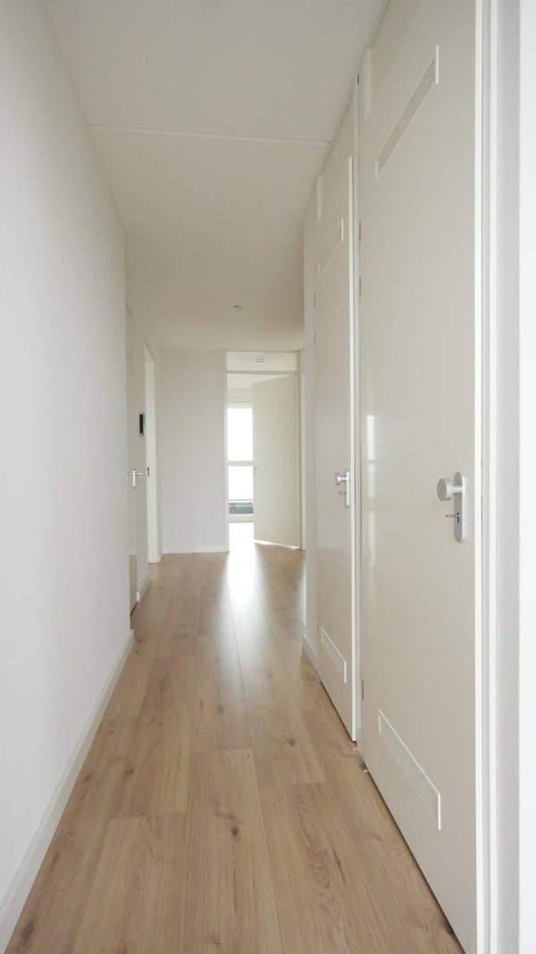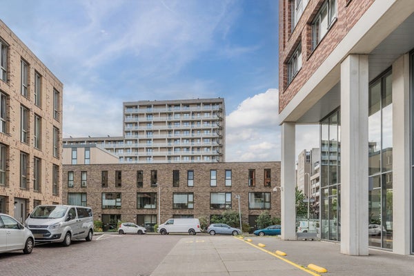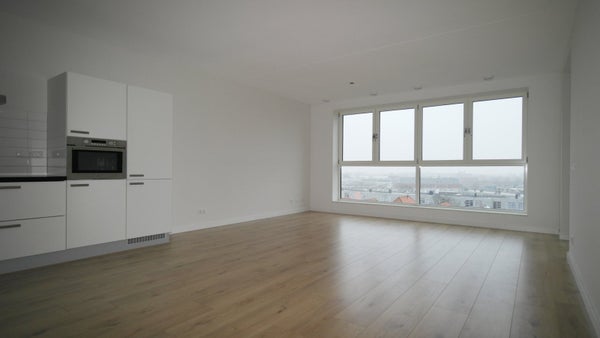 The modern tower of Energiekwartier hosts 100 rental apartments spread over 12 floors. Notable are the playful balconies and bright facades. Energiekwartier is a dynamic area blending industrial history with a future of green, safe living. Adjacent to the apartments is city park De Verademing, set to be revitalized for relaxation and socializing. Its central location by the singelgracht ensures great accessibility with RandstadRail and trams connecting to the beach and city center. The apartment at Loosduinseweg 65G features approximately 80 m² of living space, including a living room with open kitchen, 2 bedrooms, a modern bathroom, and an 8 m² loggia. The property includes a storage room and underfloor heating.