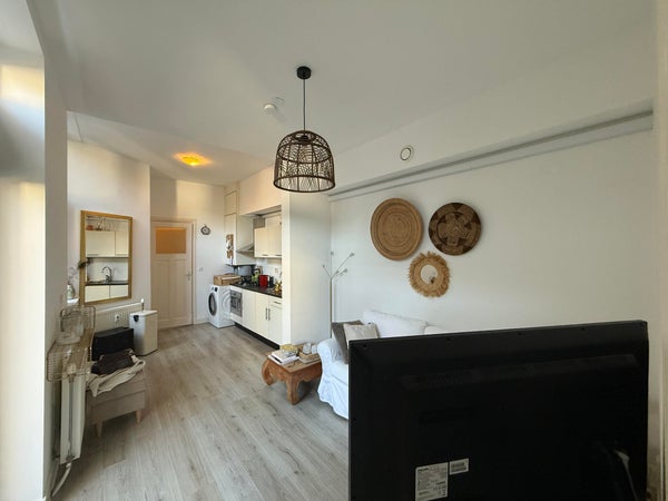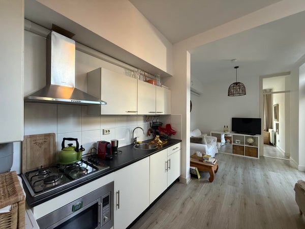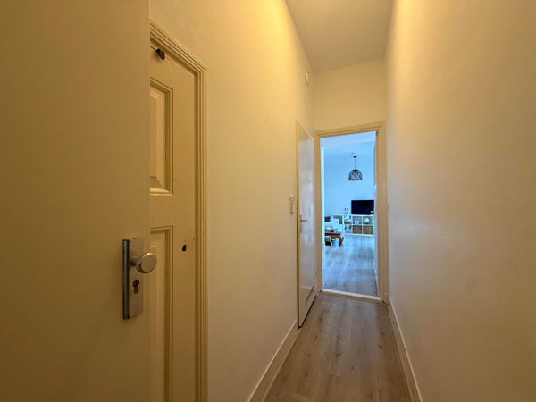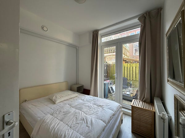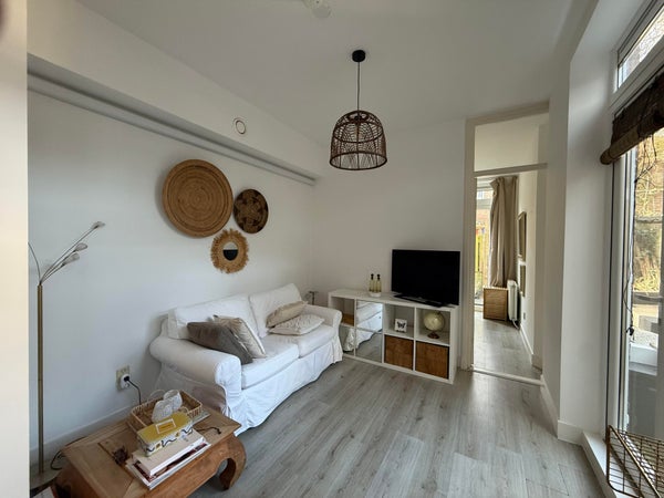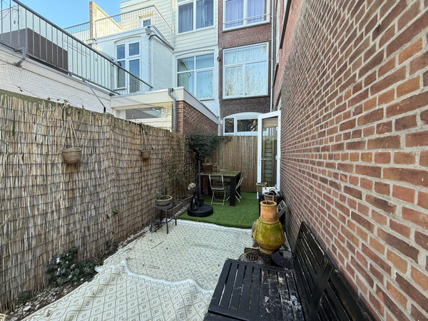 Shared entrance at street level. The apartment is located at the rear and features a living room with a separate bedroom. The kitchen is equipped with built-in appliances such as: extractor hood, gas hob, combi oven, and fridge/freezer combination. Through the rear of the house, you enter the cozy patio.
