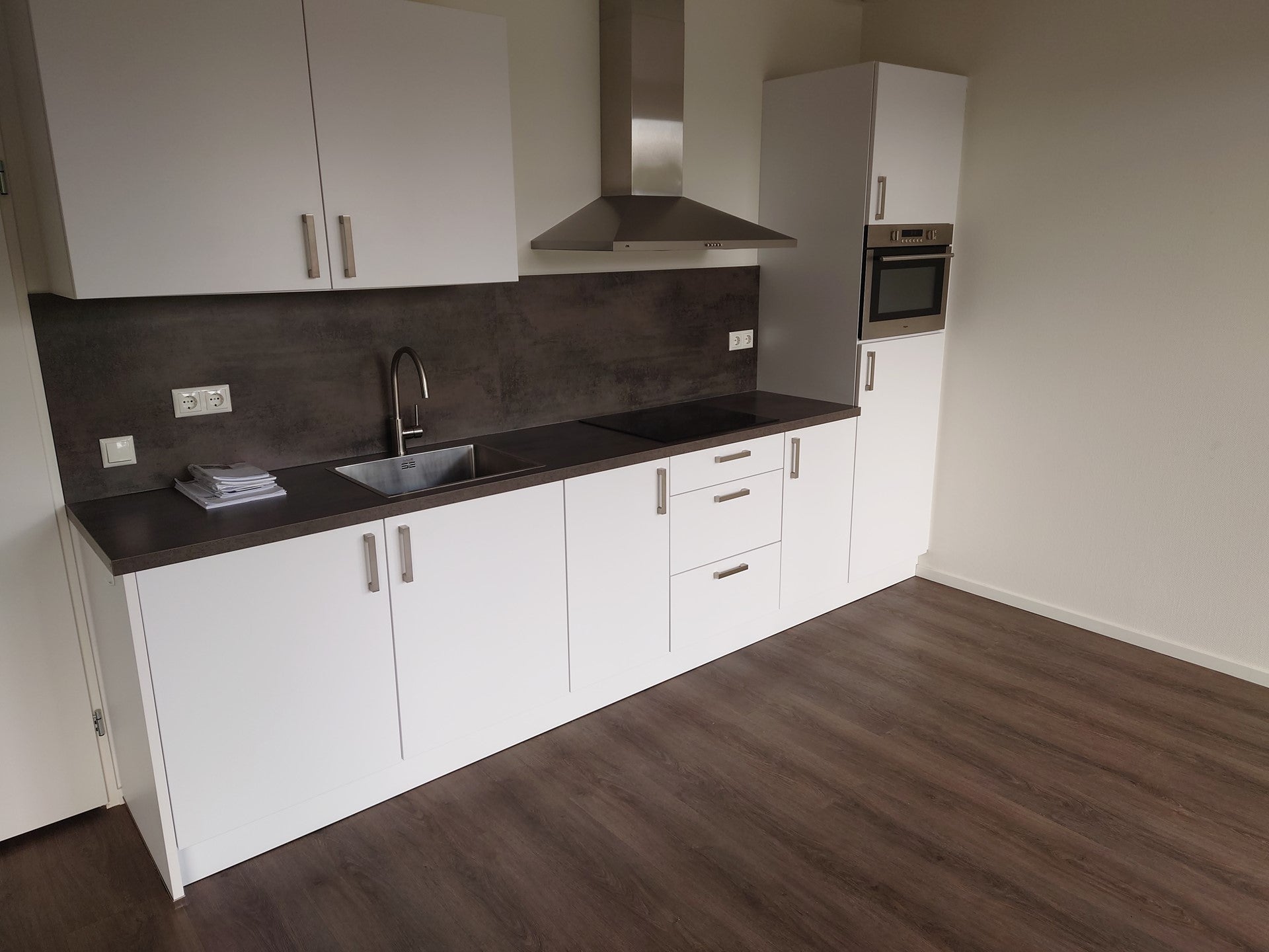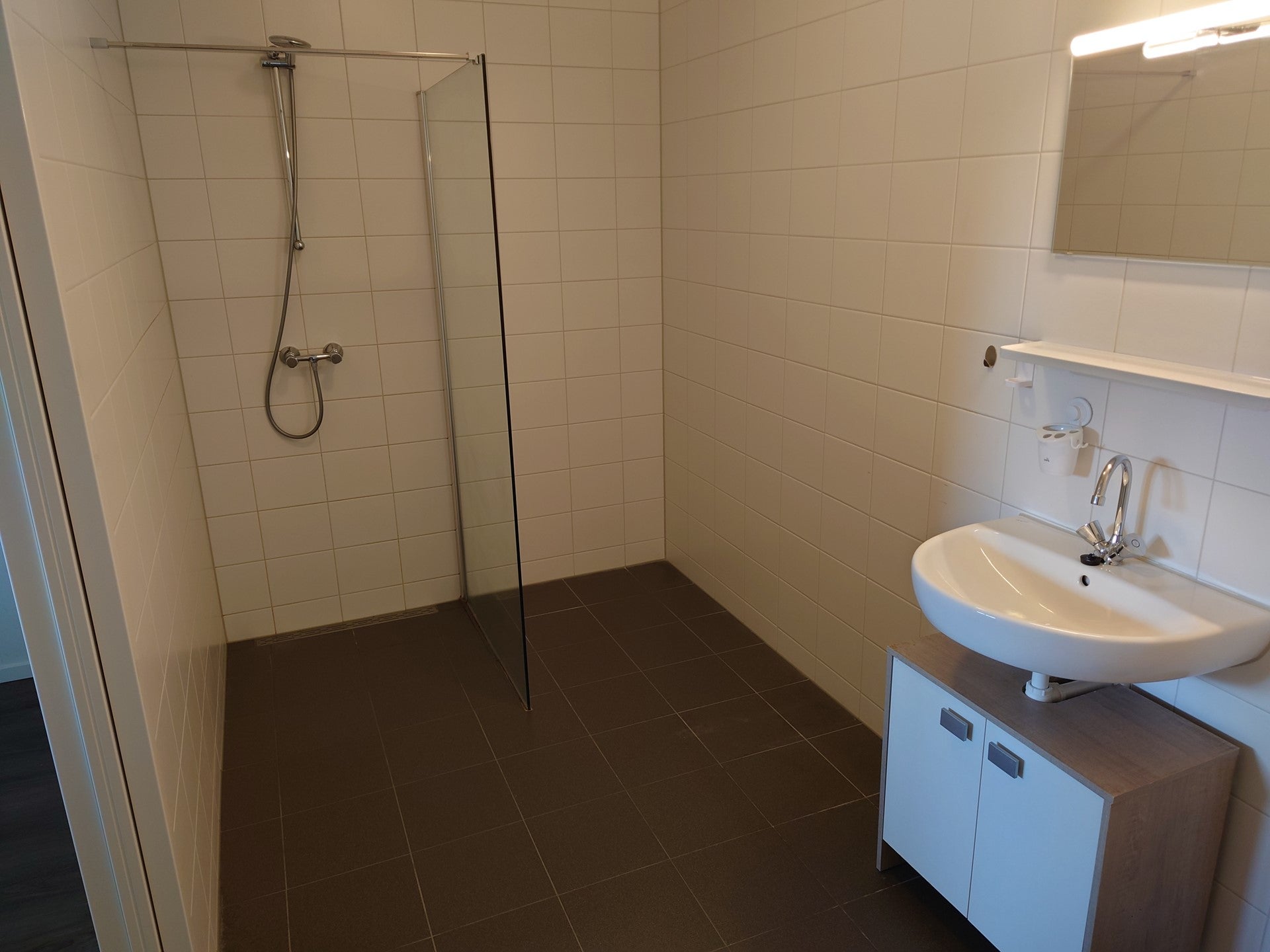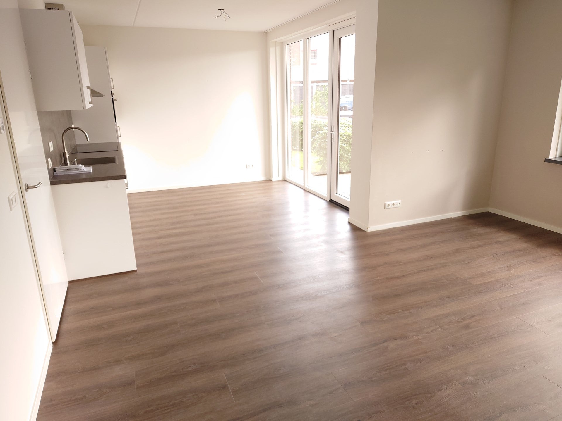 This beautiful three-room apartment is located on the ground floor of a newly-built apartment complex in the center of Drogeham. Upon entering, you find a hallway with a toilet and a storage room/utility room. The apartment features a large bedroom of 12 m2 with direct access to a spacious bathroom equipped with a shower and sink. There is also a second bedroom of over 10 m2. The large living room connects to a dining kitchen with a lovely built-in kitchen that includes a fridge, combi oven, and electric cooktop. From the dining kitchen, you can reach the front terrace and garden, perfect for enjoying the sun. With a heat pump and solar panels, water and electricity costs are minimal. The apartment includes a private storage room for bicycles. The rent is € 1,100 per month, with no service costs.