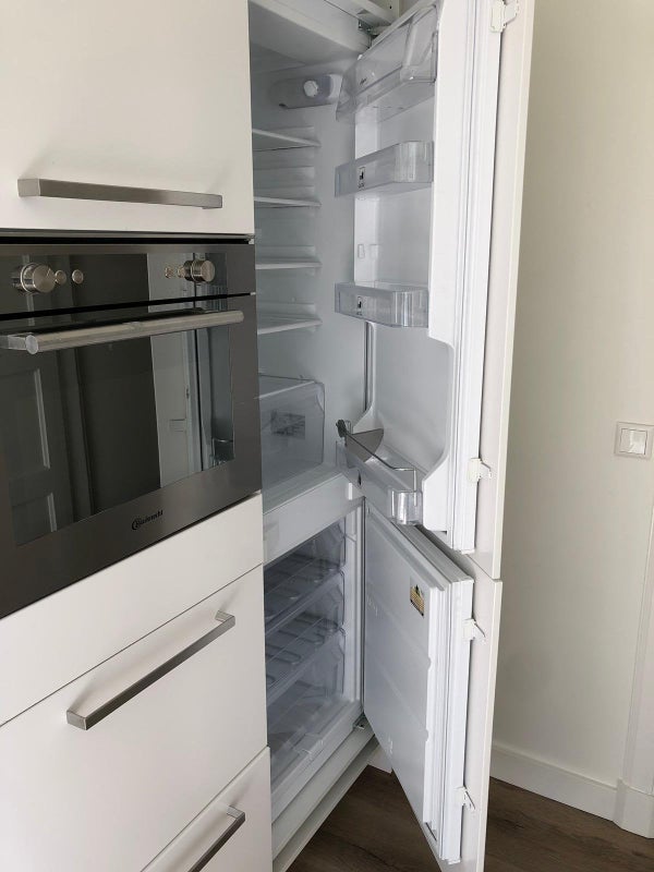 Separate, modern kitchen, equipped with all desired appliances, such as fridge/freezer combination, extractor hood, dishwasher, induction hob, and combi-oven/microwave.
