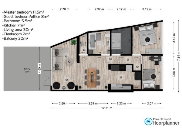 As you enter the apartment you will see a corridor with a shoe cabinet and a small wardrobe, on the right located 2 bedrooms and on the left the kitchen, bathroom, living area and the balcony.