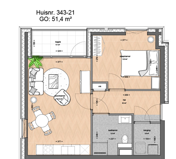 Living area: approx. 51,4 m²