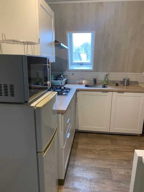 On the 1st floor of this apartment/studio is the equipped kitchen, a completely new bathroom with walk-in shower, sink combination, and toilet.