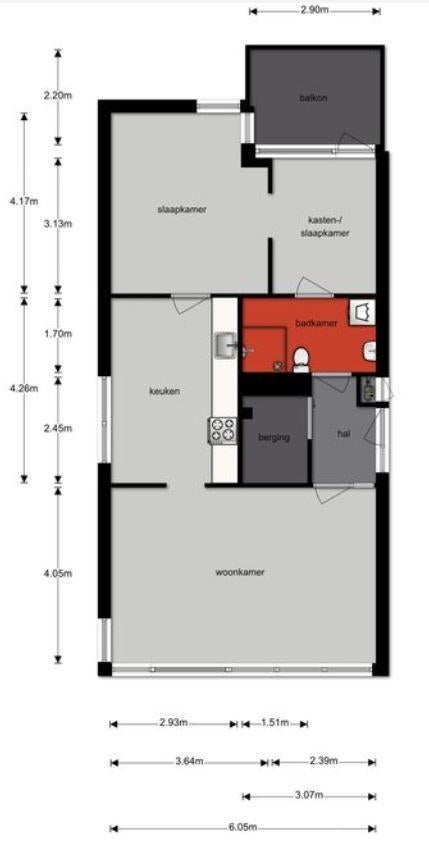 The first bedroom of this apartment is located behind the kitchen. This bedroom of approximately 12 m2 has a laminate floor and windows for the necessary light. Bedroom 2 (approximately 7 m2) is directly adjacent to this room. Currently there is an open passage between both bedrooms. However, this is easy to replace, creating two separate bedrooms again. Bedroom 2 also has a laminate floor.