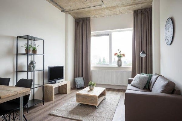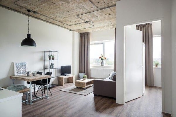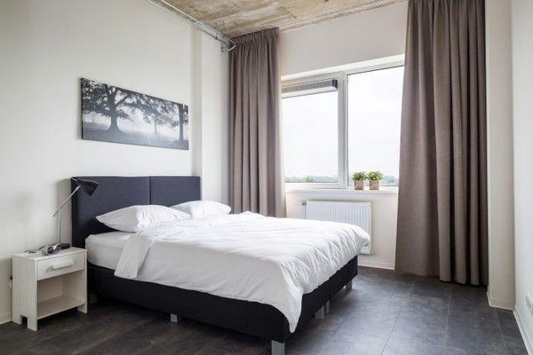 All apartments are equipped with a PVC floor. Two types of floors are used in the building, a wood look and a concrete look floor. All apartments are also fitted with blackout curtains in a neutral color.