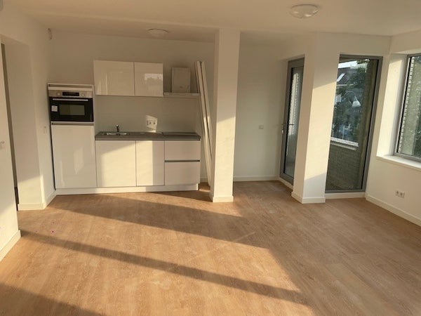 Cozy living room with lots of light. Also, all studios are equipped with an extremely durable PVC floor finish and airco. All this results in little start-up costs for the future resident(s).