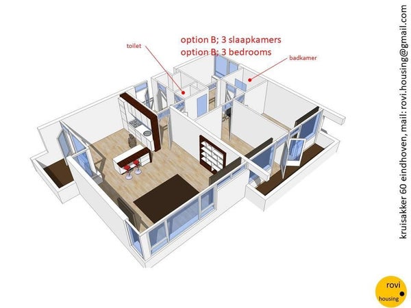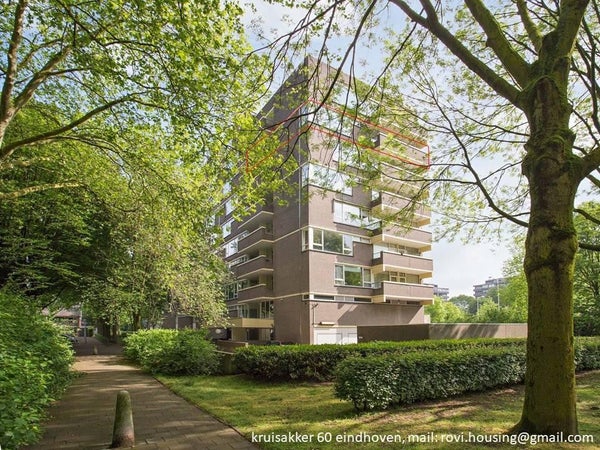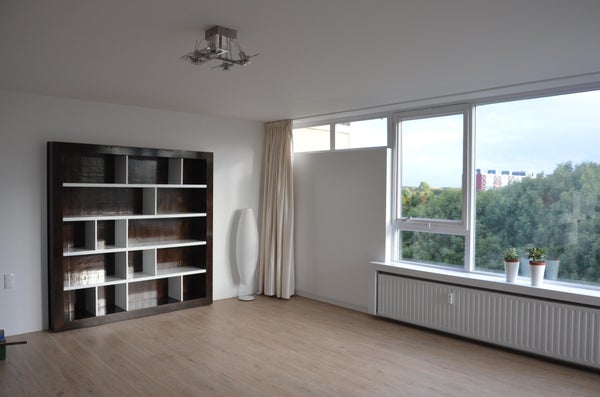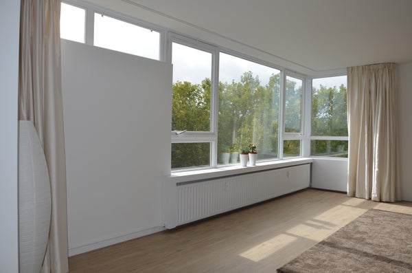 Very spacious and completely renovated apartment. Multiple wide views over green surroundings. Large balconies facing south and west accessible from the living room and bedrooms. The apartment is located in Woensel not far from the city centre, near a large shopping mall with all kind of facilities, adjacent to a green play ground and near exit roads.