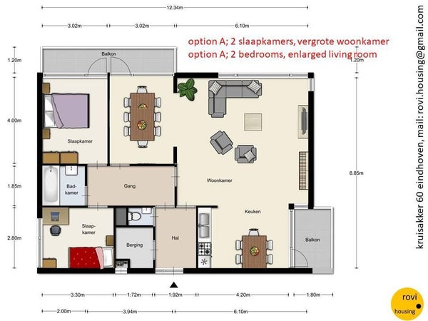 It’s possible to connect one of the bedrooms to the living room and thus enlarging your daily living space.