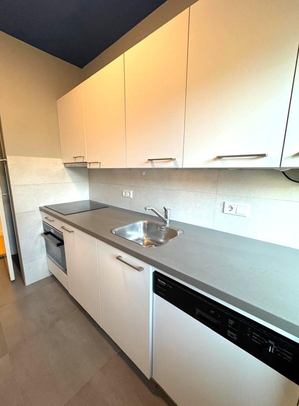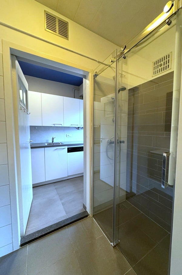 Intermediate to the bedrooms you will find the kitchen and bathroom. The kitchen is equipped with a dishwasher, induction stove (4 rings), refrigerator and microwave-oven combination. Also the central heating boiler is located here.