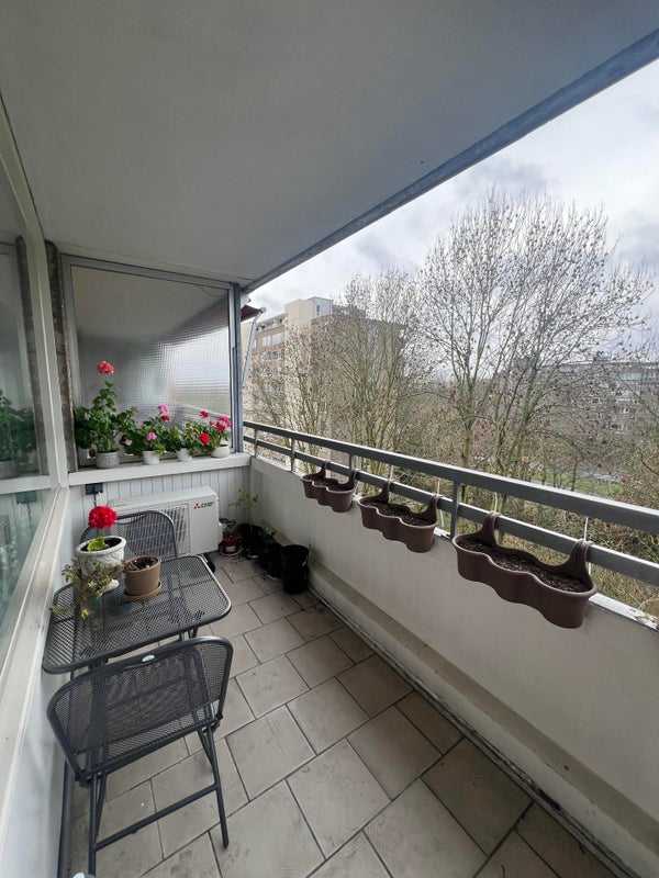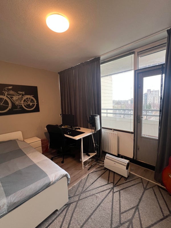 Very spacious fully furnished apartment on the sixth floor with 2 bedrooms, a work/study room, large eat-in kitchen, 2 balconies, and air conditioning in an attractive location in Eindhoven, "Woensel." Location is close to the center of Eindhoven and in the immediate vicinity of shops and main roads.
