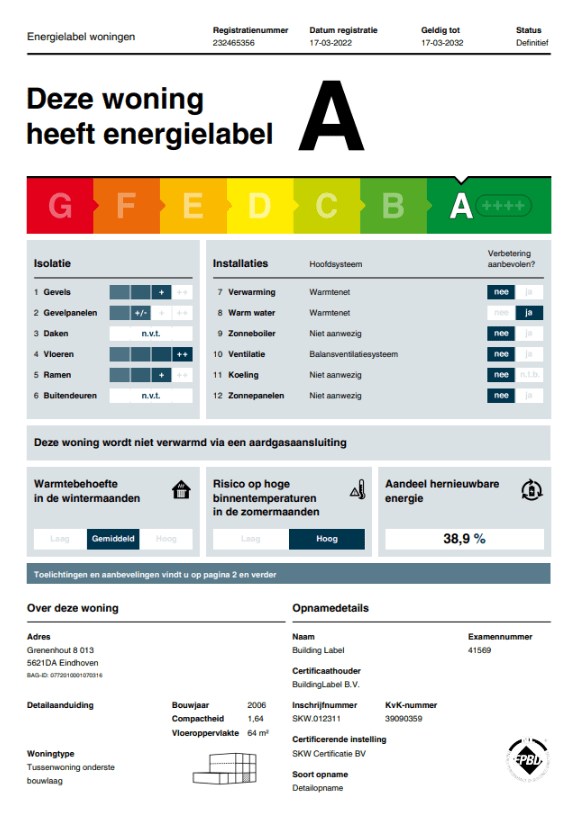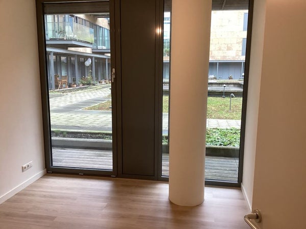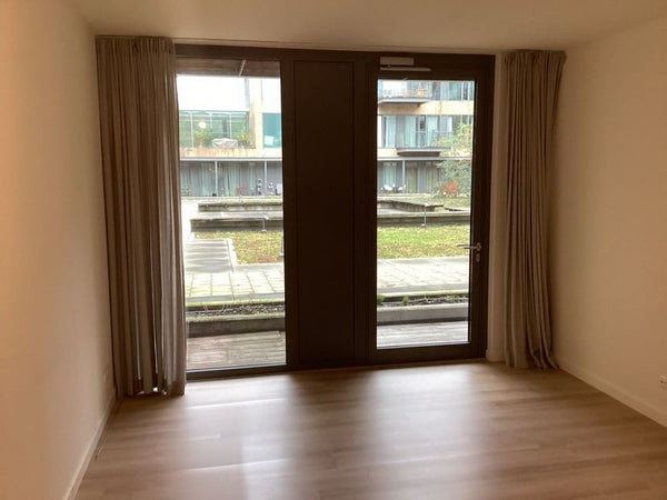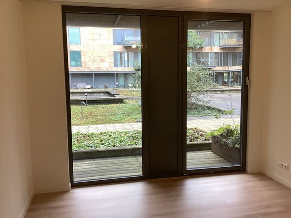This modern three-room apartment in Eindhoven, located at Grenenhout, offers a spacious total area of approximately 64m². Situated on the ground floor with a view of the internal garden, it features high ceilings and large windows enhancing the space. The living room serves as the heart of the apartment and provides access to the terrace. The luxury kitchen is equipped with built-in appliances for all your cooking needs. The bedrooms are well-arranged, with one suitable as a home office. The bathroom includes a walk-in shower. Nestled in a quiet neighborhood, you're only a 10-minute bike ride from the center and near trendy dining spots in Strijp-S. Rental details: available from March 1, 2026, base rent € 1,320.00 per month, service fee € 136.00.