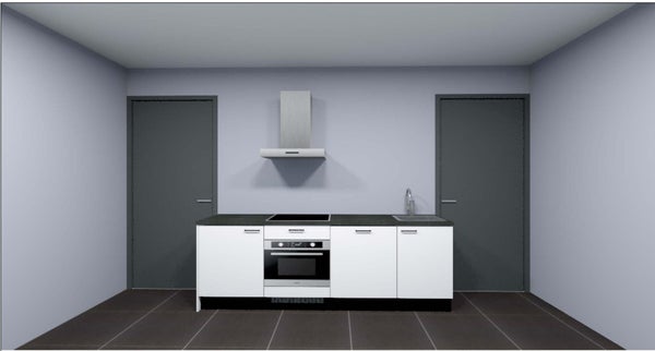 The modern kitchens feature a timeless design with white cabinet fronts and a stylish grey composite countertop. Each kitchen is fully equipped with built-in appliances, including an induction cooktop with four cooking zones and boost function, a combination microwave oven with grill and convection function, a fully integrated dishwasher suitable for 14 place settings, an undercounter refrigerator with freezer compartment, and a stainless steel extractor hood with LED lighting. This complete kitchen setup ensures the homes are comfortable and ready for immediate use.