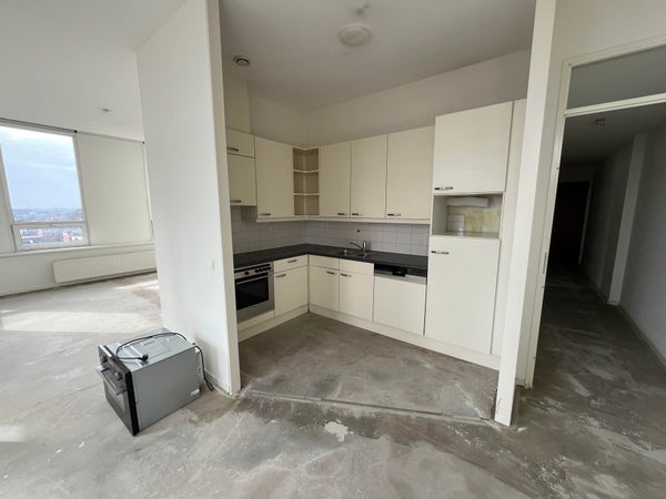 Above the city center of Enschede, on the fourth floor, this practically laid-out apartment is located. Upon entering through the entrance, you are immediately welcomed by a functional layout. Here you will find a handy storage closet, a separate toilet, and access to the living room with open kitchen, two bedrooms, and the bathroom.