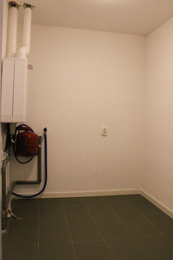 The apartment has two fully-fledged bedrooms. The spacious bathroom is completely fitted with a bathtub, walk-in shower, double sink in furniture, and a toilet. Additionally, there is a separate utility room/storage with connections for washing machines.