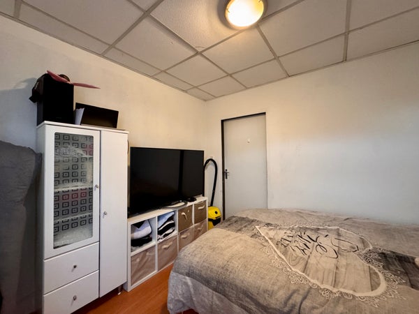 The apartment is located on the ground floor at the back of the building. Spacious living room with open kitchen. The kitchen is equipped with a fridge, freezer, microwave, sink, gas hob, and extractor hood. The apartment also has a separate bedroom. Spacious, fully tiled bathroom, with sink, shower, toilet, and washing machine connection.