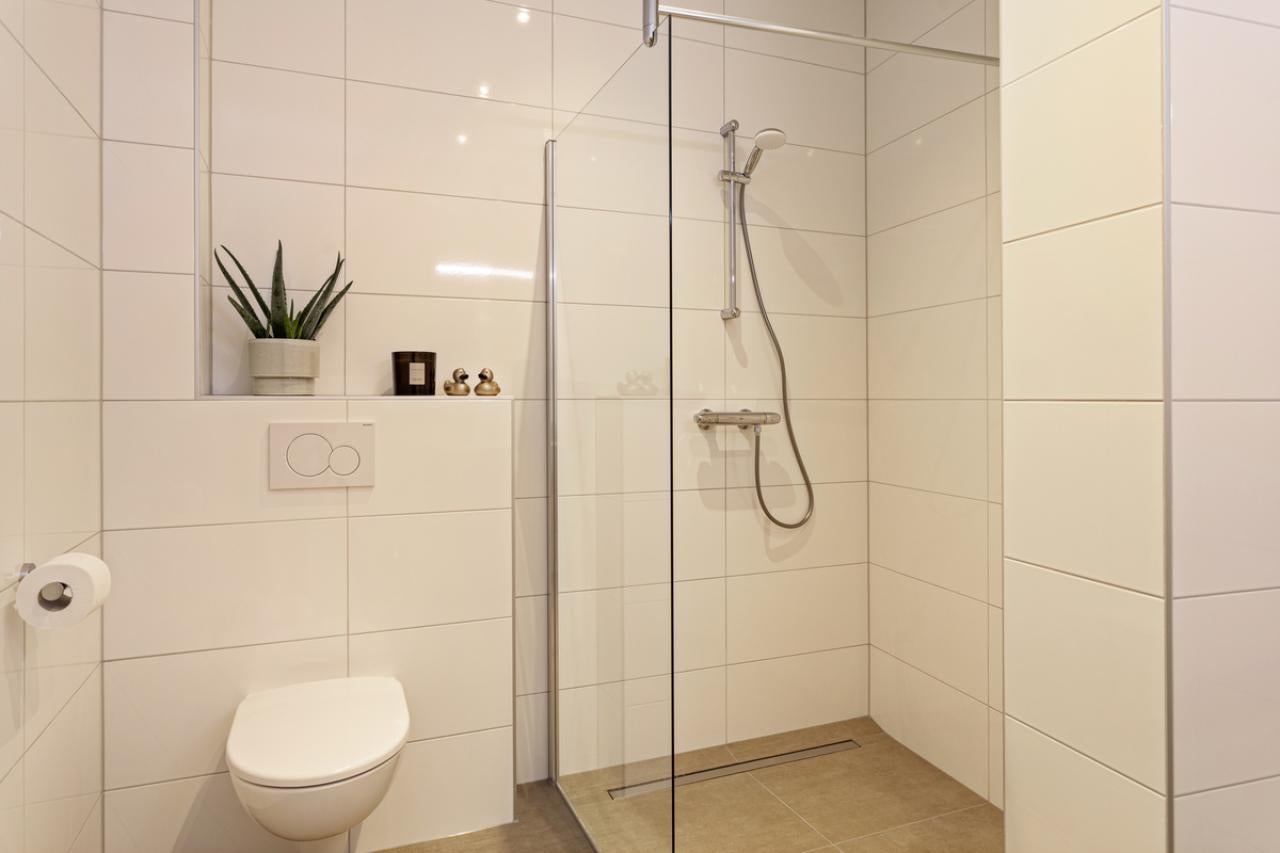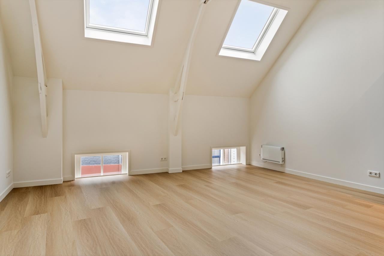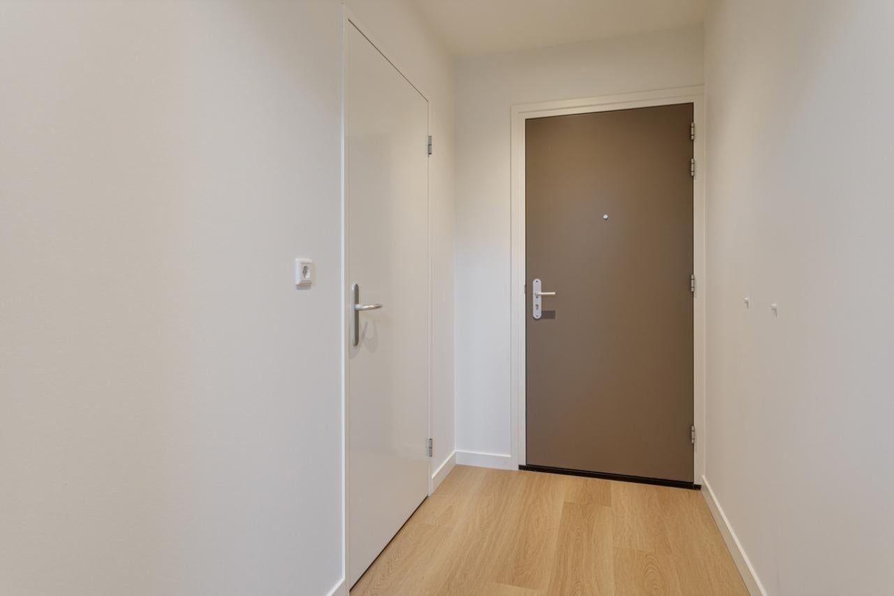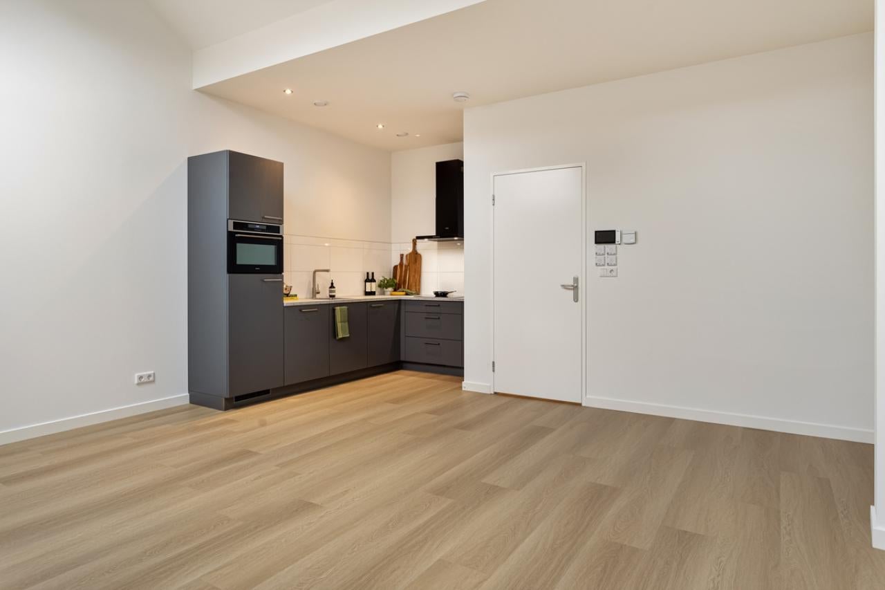 This studio apartment makes it easy to create a separate sleeping area. The bathroom features a walk-in shower and underfloor heating. With a living space of 45 m², the apartment is fully insulated and energy-efficient (label A).