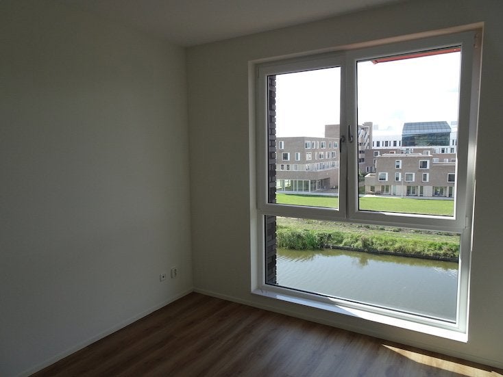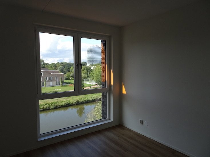 This 3-room apartment at Eelkemastraat 211 in Groningen is located on the 3rd floor with a living area of approximately 85 m². The modern living room features an open kitchen equipped with Siemens built-in appliances. There are two equally sized bedrooms and a bathroom with a walk-in shower. The southwest-facing balcony offers a view over the water. Additionally, there is an indoor storage room and a separate laundry area. The apartment is gasless, heated and cooled via a WKO system. It is available from September 13, 2024, with a rental price of € 1290,- per month and service costs of € 41,-.
