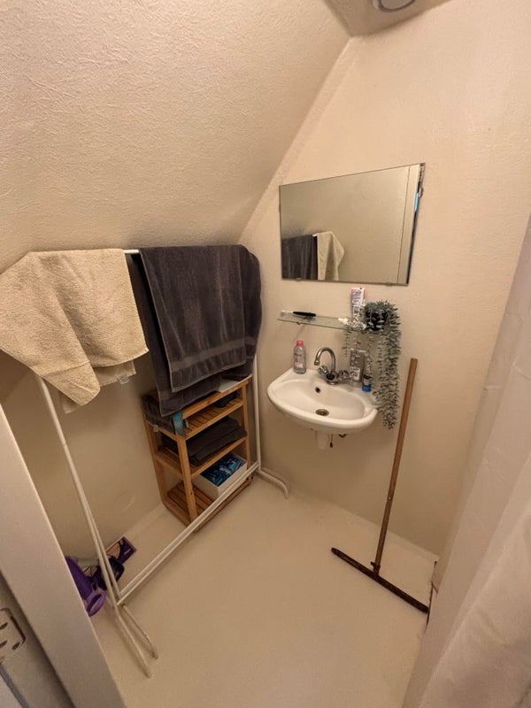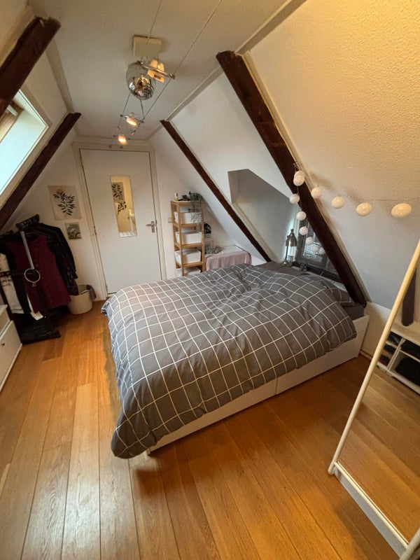 Located on the first floor at the back of the property. Layout: Entrance, living room (20m2) with open kitchen. On the second floor, you have the bathroom and bedroom. The toilet is shared on the ground floor with 1 other resident.