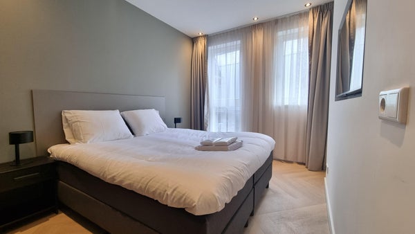 The apartment is fully furnished and equipped with luxury facilities such as a wine cooler, Quooker tap, flat-screen TVs, and a video intercom system.
