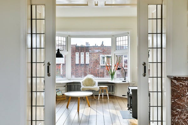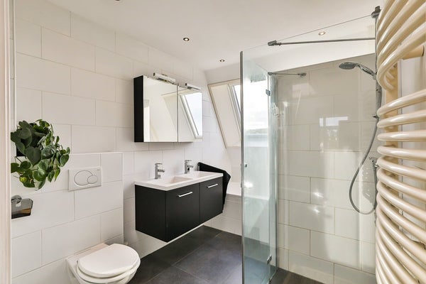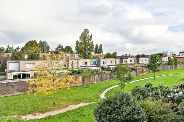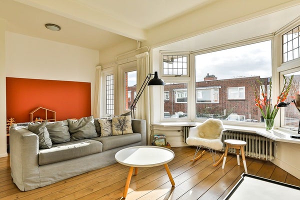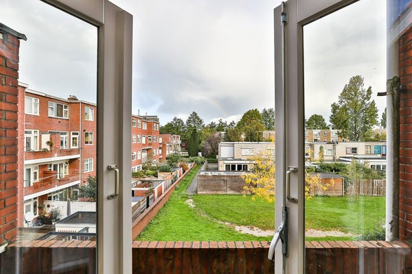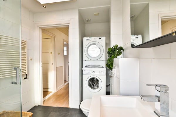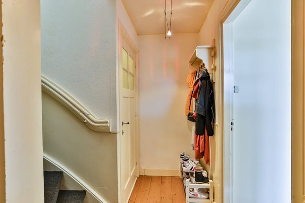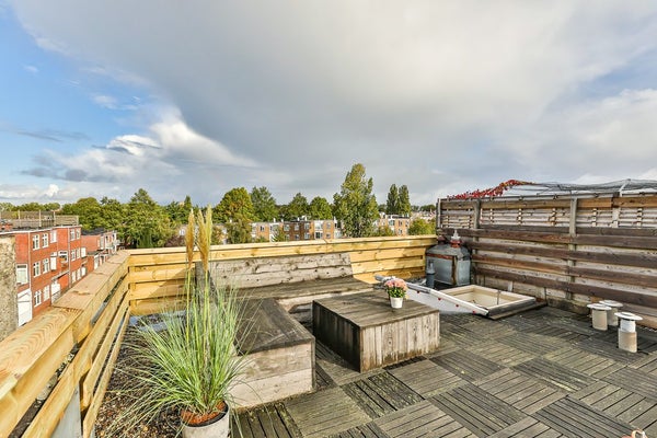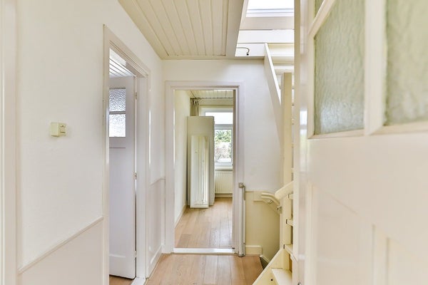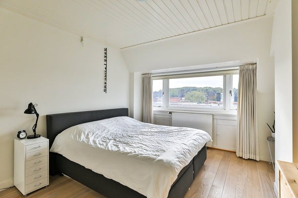 Located in a quiet street in Helpman, this charming upstairs apartment offers 100 m² of living space with 3 bedrooms and 2 balconies. The first floor features a living room of approximately 37 m² with original stained glass doors, a wood stove, and a modern kitchen with high-end appliances. The second floor houses the bedrooms of various sizes, a neat bathroom with a shower and bathtub, and laundry space. A comfortable staircase leads to the sunlit roof terrace of about 29 m² overlooking the neighborhood. There is also a stone bike shed on the ground floor. Available from November 1, 2025, fully upholstered and can be rented furnished.