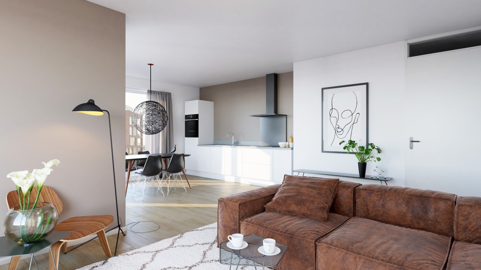 This 2-bedroom apartment spans 84 m² and is conveniently located near the center, providing easy access to all amenities, as well as the train station and highway A7. The modern kitchen features Siemens built-in appliances, and the bathroom includes a sink, designer radiator, and shower. The rental price is €1349 per month, plus €34 service costs. A lease agreement is required for at least one year, with a notice period of one month after the first 12 calendar months. For renting, an income requirement of 45 times the monthly rent applies for one income. For two incomes, both gross annual incomes are combined.