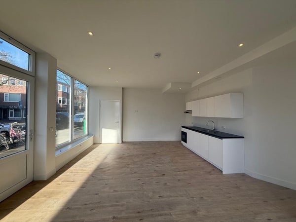 Renovated apartment located at Meeuwerderweg featuring a spacious living room with an open kitchen with various built-in appliances, one bedroom, and one bathroom. The property is rented excl.