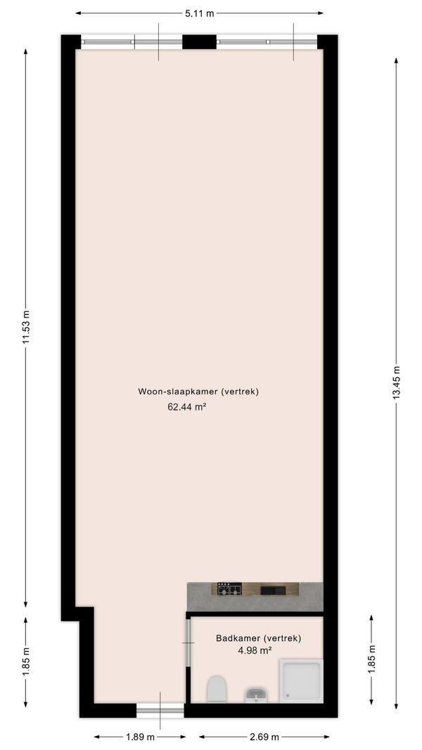 The studio is characterized by a beautiful, open, and bright living/sleeping area with a modern look. The open kitchen is fully equipped with all desired built-in appliances, ensuring optimal living comfort. Thanks to the energy label A++, the property is also very energy-efficient and future-proof.