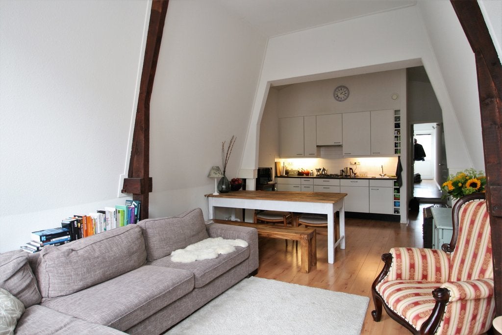 This furnished 3-room apartment is located on Grote Houtstraat in the center of Haarlem. Professionally renovated in 2006, it is on the 2nd floor with a west-facing balcony. The living room offers views of Grote Houtstraat, with Botermarkt, Grote Markt, and Centraal Station within walking distance. The layout includes an entrance, hallway, two bedrooms, a brightly tiled bathroom with a bathtub and separate shower, an indoor storage for the washing machine, a separate toilet, and an open kitchen with appliances. The rent is €1,450 per month, excluding gas, water, and electricity. The minimum rental period is two years, no pets allowed.