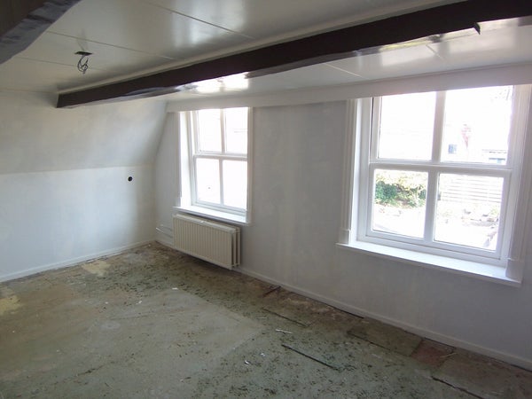 In the city center of Harlingen, with all amenities within reach, this newly renovated characteristic apartment on the first floor is available for rent. Access is through a shared entrance leading to the living room with a beamed ceiling and an open kitchen equipped with built-in appliances and garden doors to the private terrace. The upper floor includes a landing, bathroom with shower, toilet, and basin, a bedroom, and a study/storage room. The apartment is partly furnished with curtains, lighting, laminate, and carpeting. The rent is € 640 per month, excluding service costs of € 80 and an advance for gas, water, and electricity of € 180. The minimum rental period is two years with a deposit of one month's rent. The living area is 36 m2 and it is fully insulated.