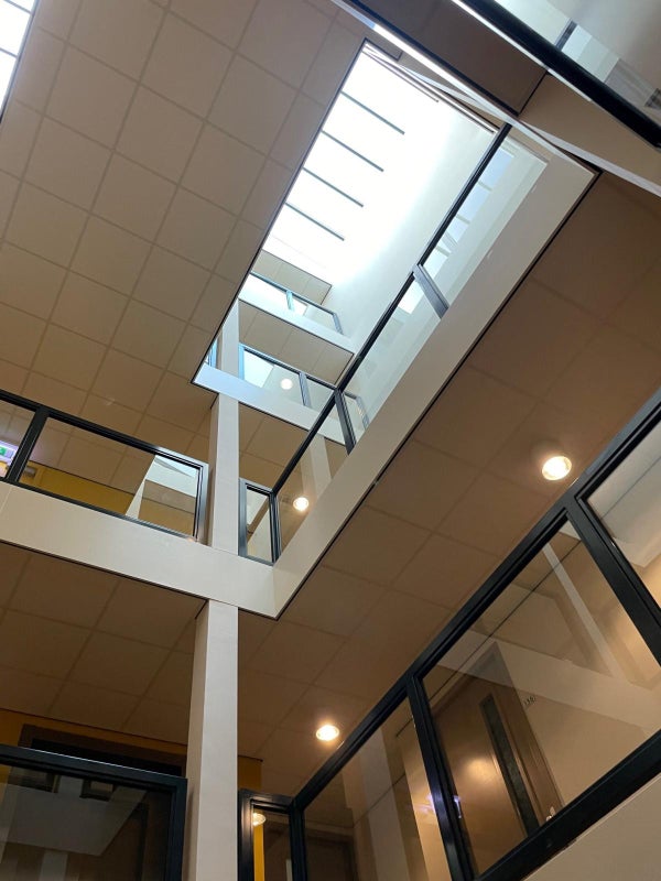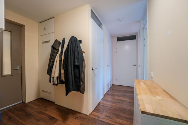Gezamenlijke entree met trappenhuis. Hal met doorloop naar de slaapkamers, separaat toilet, badkamer, woonkamer met luxe open keuken. Externe berging.
