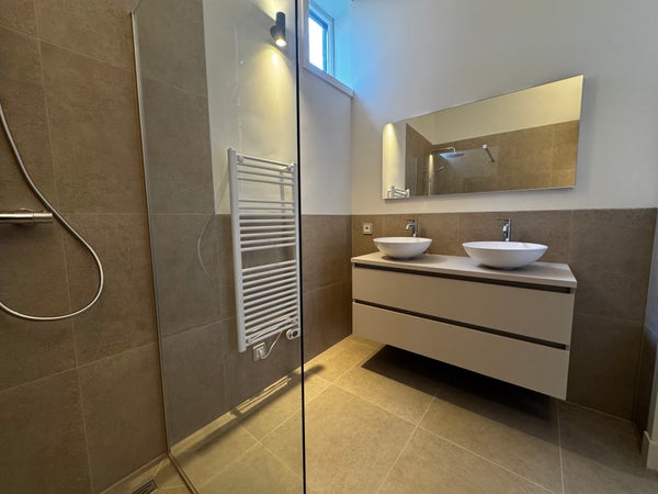 Equipped with roller shutters on all windows and a spacious bathroom with a walk-in shower