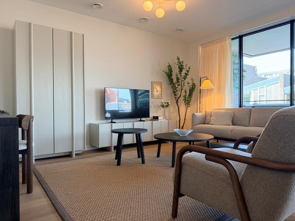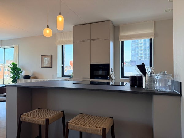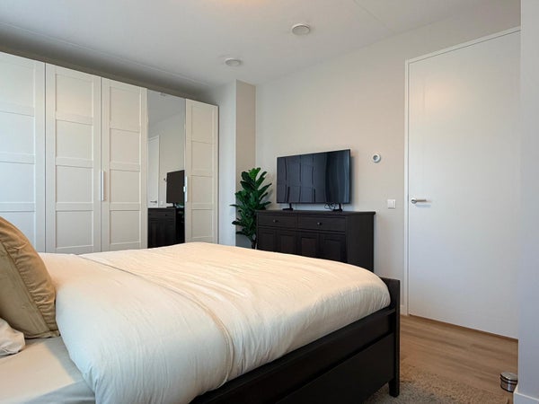 In the charming center of Hoofddorp, next to the De Vier Meren shopping center, we offer this brand-new, turn-key 3-room apartment for rent. The apartment features a balcony and a private parking space in the underground parking garage. The town center offers a wide range of shops and various restaurants and cafes. There is even a cinema within walking distance! Additionally, Hoofddorp has a train station and access roads to Schiphol, Amsterdam, and The Hague. Available for an indefinite period with a minimum rental period of 12 months.